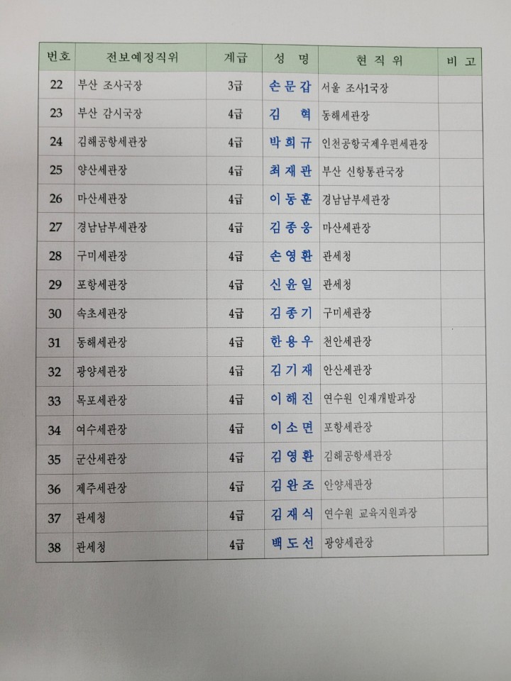 [인사][2.15(월)]과장급 전보인사 기준 및 명단
